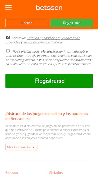 Para registrarme en Betsson, simplemente accedí a la página principal y seleccioné el botón "Regístrate" en la esquina superior derecha.