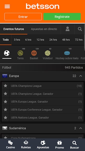 Para apostar por primera vez en Betsson, basta con registrarse y depositar dinero. Luego, simplemente hay que localizar un evento de interés, hacer clic en la cuota deseada y especificar el importe de la apuesta en el cupón de apuesta. Finalmente, se debe presionar el botón verde "Apostar" para realizar la apuesta.