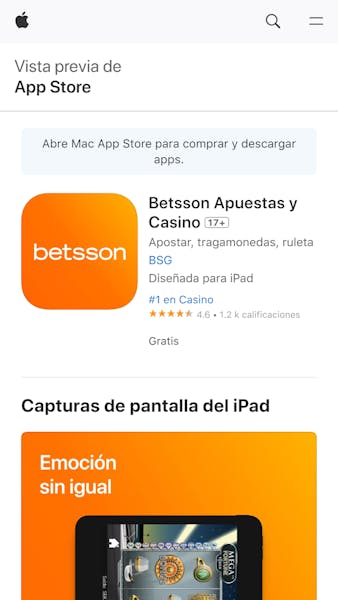 Betsson cuenta con una aplicación dedicada en España disponible para su descarga desde la Apple Store para dispositivos Apple y desde Google Play para Android.