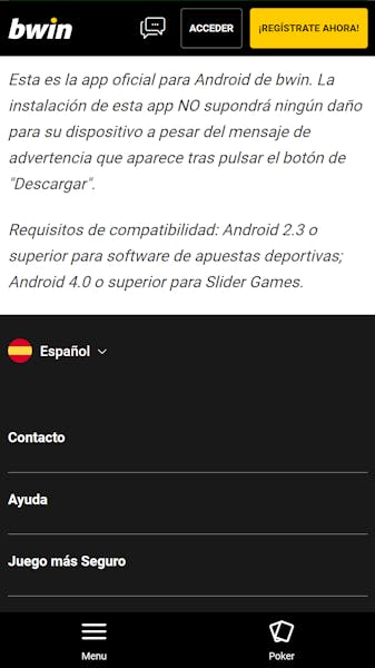 Un aspecto destacado de la app es su compatibilidad con dispositivos iOS y Android. La instalación fue sencilla; en mi iPhone, la descargué directamente desde la App Store, y en Android, la instalé sin complicaciones desde el sitio web oficial de Bwin lo cual siempre recomiendo para evitar problemas de seguridad.