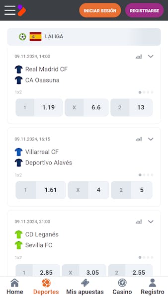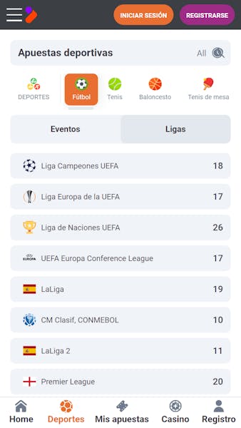 En esta casa de apuestas, el deporte rey es, sin duda, el que lleva la corona. Cuenta con casi 200 competiciones, 178 mercados y miles de posibilidades dentro de las ligas más populares como, por ejemplo, las 4.500 que encontramos en la oferta de apuestas en LaLiga.