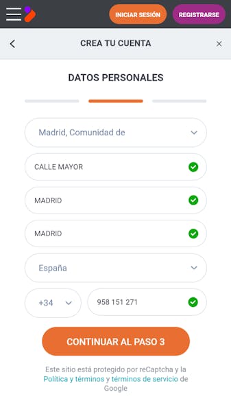 - Al hacer clic en el botón “Registrarse” en la parte superior derecha, accedes a un formulario que debes completar con tus datos personales, de contacto y del domicilio, además de aceptar los términos y condiciones y la Política de Seguridad.