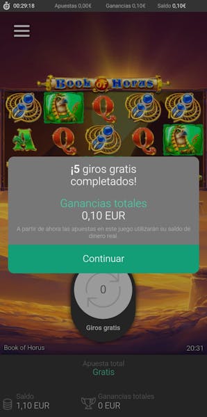 Además, al terminar las tiradas gratis aparece un aviso de que se han acabado y que para seguir jugando se debe usar saldo propio, lo cual hace todo el proceso muy transparente.