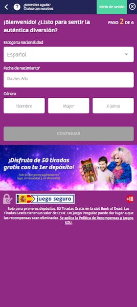 - Regístrate en PlayUZU: Accede al sitio web oficial de PlayUZU España y haz clic en "Únete ahora". Completa el formulario con tus datos personales, como nombre, dirección de correo electrónico y fecha de nacimiento.