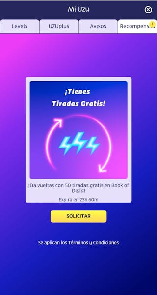 - Comienza a jugar: Al entrar en tu sección de recompensas, ya podrás disfrutar de tus tiradas gratis en PlayUZU.