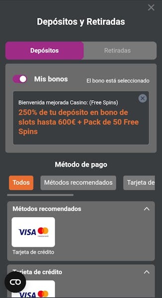 📝 Recuerda asegurarte de depositar el mínimo necesario, que en este caso para el bono de bienvenida es de 20 euros.