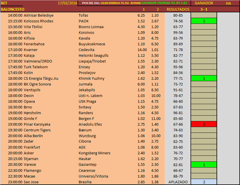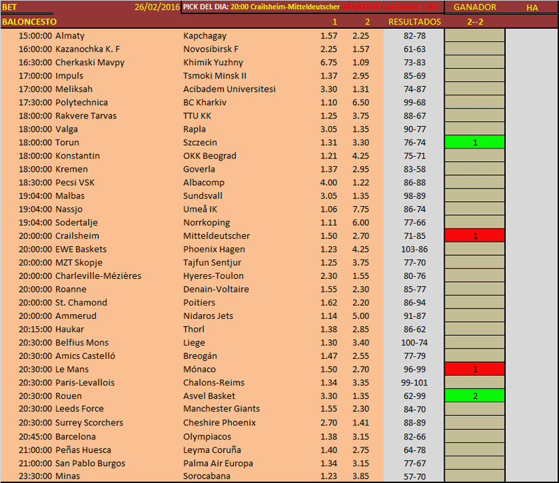 VERSION BETA PICK´S BALONCESTO, 18 FEBRERO 2016.