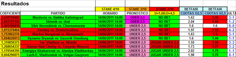 over/under 2,5 goles,futbol ruso,martes 14 junio 2011.