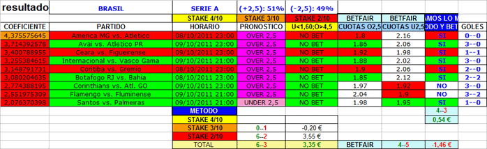 ANALISIS DEL MARCADOR EXACTO,BRASIL SERIE A Y SERIE B 8 Y 9 OCTUBRE 2011. ANALISIS PARTIENDO DEL MARCADOR EXACTO.