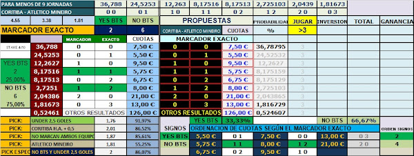 Partido de la Serie A en Brasil, juegan el Coritiba y el Atlético MG, para el pronóstico buscaré el under 2.5 goles, los locales llevan varios partidos donde no pierden, gracias a esos han podido salir de la zona de descenso, el visitante, lleva muy buena línea, un poco empañada por sus últimos diputados, ya que han perdido dos consecutivos en los últimos 3 que han disputado, pero son terceros, cerca de Sao Paulo e Internacional.
