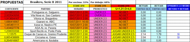 BRASIL,SERIE B,analisis marcador exacto,5 julio 2011.