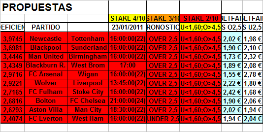 Resultados pick´s ligas españolas y europeas 22-23-24 enero 2011. Resultados Pick´s color purpura:Serie A :