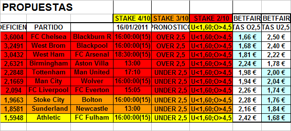 Propuesta over/under 2,5 goles ligas española y europeas para 15-16-17 enero 2011.