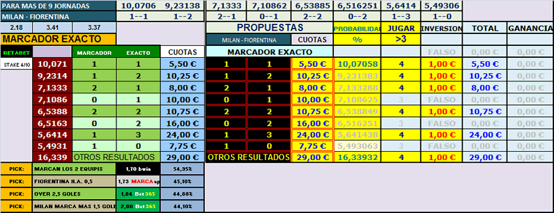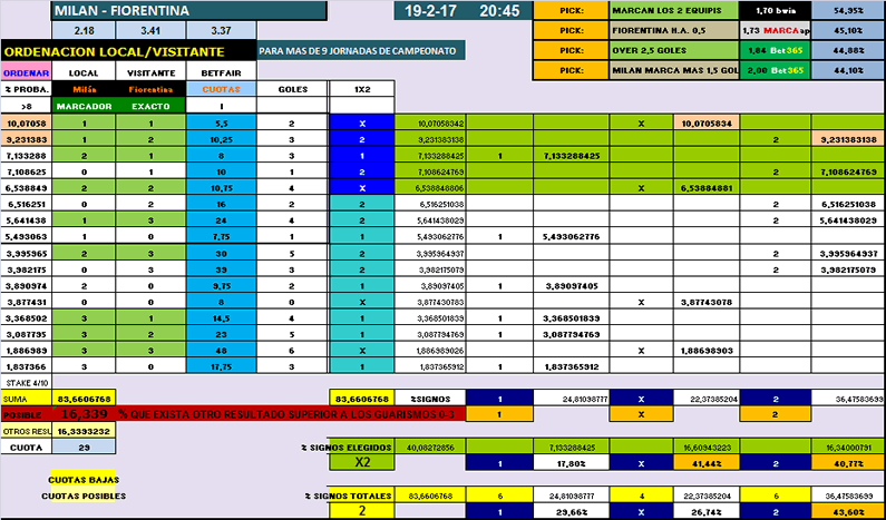 En cuanto a las estadísticas tenemos a Milán con una media de 2.7 tarjetas por encuentro y Fiorentina con un promedio de 2.6. En los 12 encuentros de local del Milán tenemos 3 rojos, 2 nulos y 7 verdes, mientras que en los 12 partidos de visitante de la Fiorentina tendríamos 8 rojos, 2 nulos y 2 verdes, pero si vemos los árbitros que le ha tocado en esos 8 rojos vemos que son muy under(Russo, Calvarese, Mazzoleni, Massa, Irrati) y los over han salido con árbitros más over como Valeri(El colegiado de este encuentro) o Damato.