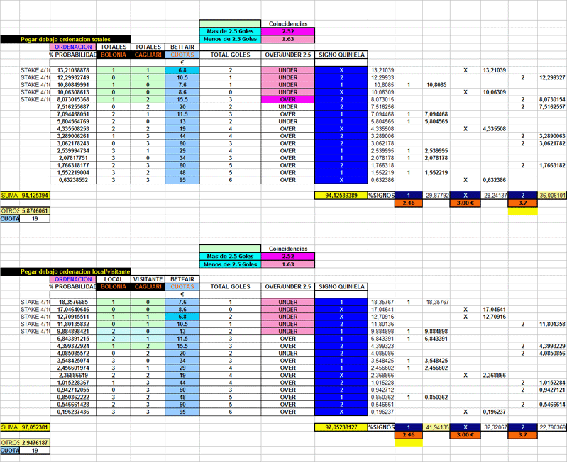 PROBABILIDAD DEL MARCADOR EXACTO,SU TENDENCIA AL OVER/UNDER 2,5 Y SU SIGNO