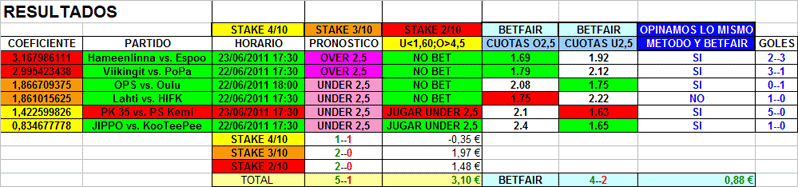 Partidos de futbol al under/over 2,5 goles de las diversas ligas para MARTES , MIERCOLES Y JUEVES 21-22-23 de junio 2011.