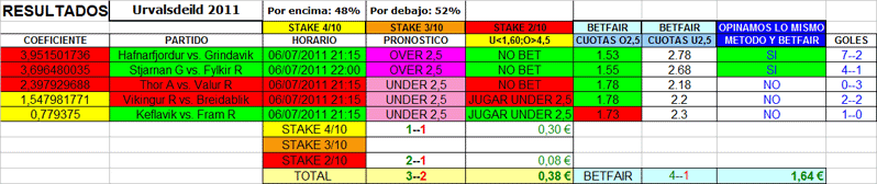 FUTBOL,over/under 2,5 goles,ligas internacionales,miercoles,jueves y viernes 6-7-8 julio 2011.