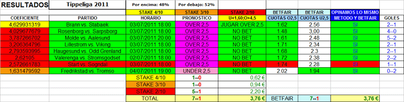 FUTBOL,over/under 2.5 goles,ligas internacionales,1-2-3-4 julio 2011.