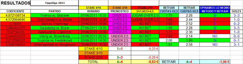 FUTBOL,over/under 2.5 goles,sabado,domingo y lunes 25-26-27 junio 2011.