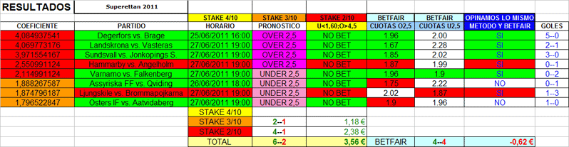FUTBOL,over/under 2.5 goles,sabado,domingo y lunes 25-26-27 junio 2011.