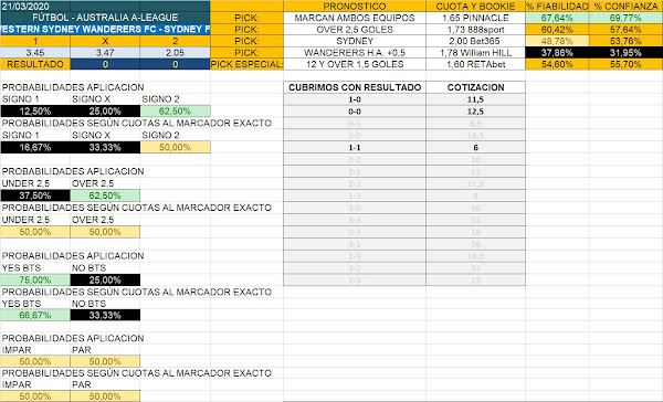 Con la estadística de ambos equipos este pronóstico es a cara o cruz, pero siendo que el mercado está hecho unos zorros, lo poco que encuentro voy a saco. Por un lado tenemos al local, el WS Wanderers, y con él son todo noticias negativas. De 9 partidos como local, sólo 3 equipos han conseguido marcarle 2 ó más goles: 5-2 Adelaide,7º 1-2 brisbane, 4º 2-3 Melbourne, 2º 4 equipos le hicieron 1 gol, y 2 equipos 0. Osea, 3 verdes de 9, un desastre. Si miramos los partidos entre ellos seguimos desmoralizándonos pues sin ir más lejos el 28 de febrero les ganaron a domicilio 0-1, y en 2019 en su feudo 1 victoria 1-0, y un empate 1-1, así que llevan 3 partidos sin hacerles 2 goles. Y por último para acabar de constatar la locura del pronóstico, decir que WS ocupa el 8º puesto en la clasificación a 2pts de playoffs, con lo que su necesidad de victoria es grande y sabiendo la capacidad goleadora de Sidney es de esperar que defensivamente presten especial atención. Pero como en la vida no todo son malas noticias, miremos los números de Sidney, pues como visitante en 9 partidos lleva 22 goles, y si bien es cierto que el año pasado no fue un campo propicio, venía de 3 visitas consecutivas ganando y anotándoles 3, 3, y 5 goles. Estos son los resultados como visitante en sus 9 partidos: 1-4, 0-3, 0-3, 1-2, 2-2, 0-2, 1-3, 1-0, 2-3. En 8 partidos tendríamos 8 verdes y el único rojo precisamente contra su rival, y aunque Sidney va 1º en la clasificación y los puntos le sobran supongo y espero que tendrán ganas de decirle a WS quién manda y de bajarles los humos, a la vez que tendrán ganas de revancha pues como he comentado hace poco perdieron en su casa contra ellos. Lo bueno también es que pueden afrontar el duelo desde la tranquilidad, el poder desplegar toda su ofensiva y el ir a por el partido. Vienen de empatar en casa 0-0 contra perth Glory y tienen que volver a la senda del gol, y siendo que no marcaron crecen las posibilidades de que en el siguiente sí lo hagan. Como se puede ver aquí cada uno puede hacer su lectura, una basándonos en el local con cierto pesimismo y otra basándonos en el visitante con cierto optimismo. Para que nos vamos a engañar, riesgo tiene Todo el del mundo, pero si tengo que apostar a equipos como el Chinandega que sé que existe por que mi vecino es de allí ( tiene huevos lo pequeño que es el mundo ) prefiero apostar a un equipo que si tiene un día normal lo puede hacer tranquilamente, luego que gane o no me da lo mismo. Desde luego la cuota no está nada mal y si bien indica la dificultad también nos premia el riesgo asumido. Por último decir que yo creo que lo van a lograr y por eso asumo el riesgo. Stake mínimo,como no podía ser de otra manera. Así que moneda al aire, cara ganamos, cruz perdemos. Eso es todo amigos. P.D. Feliz cuarentena a todos.