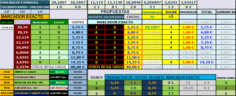 Conferencia Oeste de la MLS, juegan y analizamos el Colorado Rapids y el San Jose Earthquakes, los de Colorado van últimos, sus números muy complicados, 1 victoria, 1 empate de 8 partidos disputados, con 5 goles a favor y 12 en contra, su rival, los de San José, 4 victorias, 3 empates y 3 derrotas, mucho más arriba y con una diferencia de 11 puntos, estos con 15, los goles, después de 10 jugados, 12 a favor y 10 en su contra, como vemos, tampoco son un equipo goleador, si que es cierto, que salen a uno marcado y a uno encajado de media por encuentro.