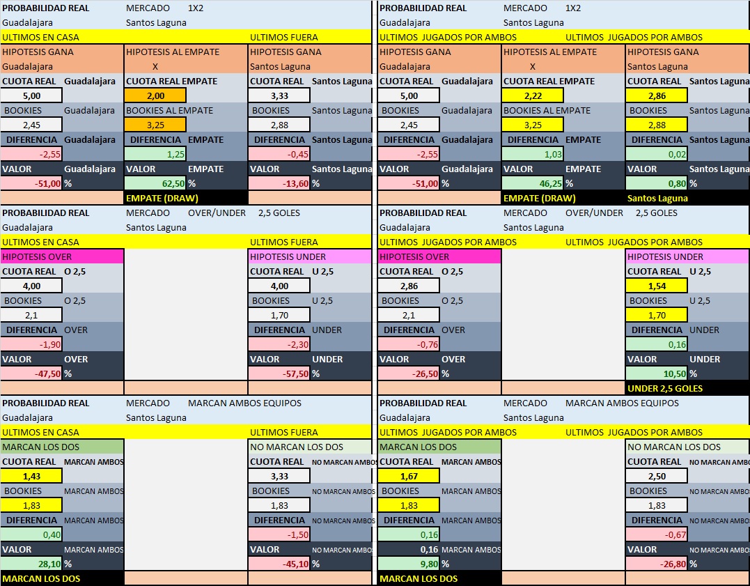 La probabilidad real en este mercado nos muestra cuando entramos analizando el método donde ambos equipos se toman sus últimos dipsutados, dando igual que sean en casa o fuera de ella, una cuota de 1.54, mientras las bookies la están metiendo entre el 1.70 y el 1.75.