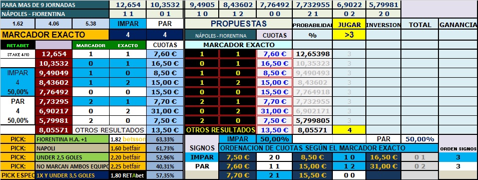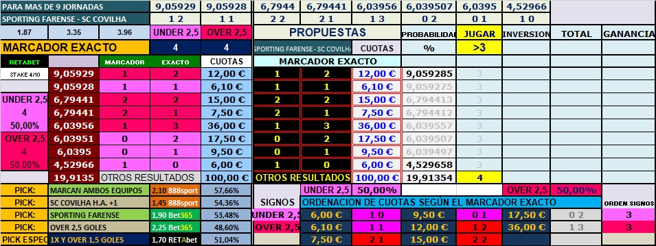 Lo dicho, e pronóstico será 1X Y UNDER 3.5 goles, la cuota en RETABET está en 1.70 y en BET365 se cotiza en 1.66