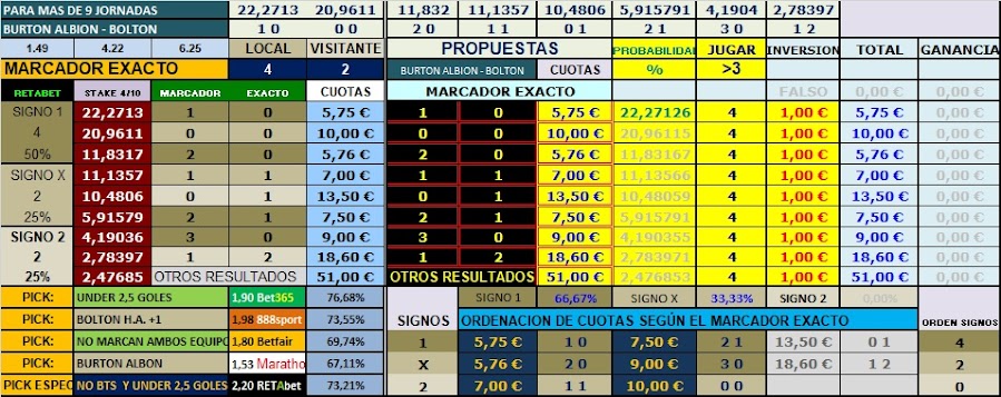 Por lo tanto busco un partido con muy pocos goles para cumplir el pronóstico, pienso que ambos equipos dan este perfil y puede ser posible, la situción en la tabla ayuda, 4 puntos les separan y pegados como están, el local querra sumar para