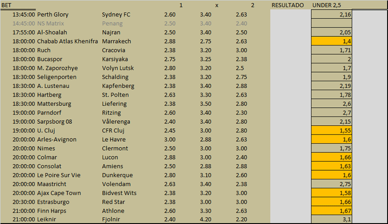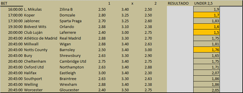 Con la aplicación del under/over 2.5 goles,pongo la barrera en esa linea y viendo el tipo de cuota lo elije la aplicación o no,tomando otro parámetro que es el de goles que sacarían entre los dos equipos de media cuando se enfrentan.