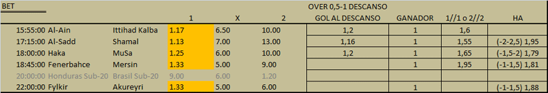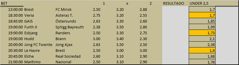 Lo dicho, stake 2/10 y voy con los pick´s que tienen la celda de color naranja.