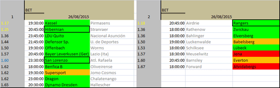 Hola Abreu13,lo de abrir el hilo aquí,se hizo en su dia porque empezó a hacerse lo de los pronósticos y no pegaba con el tipo de post que hacía yo,bueno que hago,lo del nombre lo pusimos como el que tenemos en el hilo del tenis de creación más reciente,a mi no me molesta,y como siempre voy trasteando con el excel e intento analizar por medio de diversos métodos,estadísticos,todos,aunque intento cada dia que pasa, darle más parámetros que claro a simple vista no se ven cualitativos,más que cuantitativos,pero son muy complicados de explicar y hacerlos entender para mucha gente,el partir de unas cuotas,sólo es uno de los principios en los que vaso las aplicaciones,pero cierto es,que puedo acotarlas numéricamente,para que solo aparezcan en un intervalo que yo pongo preestablecido,por ejemplo,en el caso que nos ocupa hoy,desde cuota 1 a cuota 1.69,este es un punto de partida,y a groso modo te puedo explicar que...luego empiezo a poner condiciones,discrimino en si el equipo que tiene estas cuotas va a jugar de local o de visitante,el tipo de competición,en este caso quitando los partidos amistosos,en el caso particular de hoy,de los tres equipos que eligió la aplicación,al ser la mayoria partido de Europa League,que dentro de lo que ya encauzabamos para hoy,de los tres,porque le pido que la cuota entre estos sume rondando el 2,para poder doblar la inversión en caso de acierto,que me buscara los partidos donde el equipo elegido debía de sacar la eliminatoria,es decir,obligaba a la aplicación a buscar tomando el partido de ida que hoy no tubiera otra que ganar,así salió el Bilbao 0-1 perdiendo y el Salzburgo 0-2 perdiendo,pero se quedaron otros como el Dortmund 4-3,el Rubin 1-1,Fenerbahce 1-0 que con un simple empate pasaban,son formas de verlo y entiendo que mucha gente no llegue a entender lo que en muchas ocasiones hago,pero no busco más que intentar sacar el máximo rendimiento a unos resultados,un dia sale bien y otros no tan bien,y unos dias aplico unas variables y otro dia unas distintas a las del dia anterior según la circunstacia que rodee los encuentros.