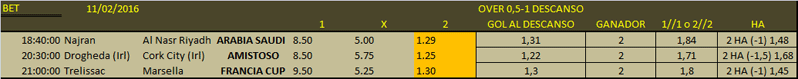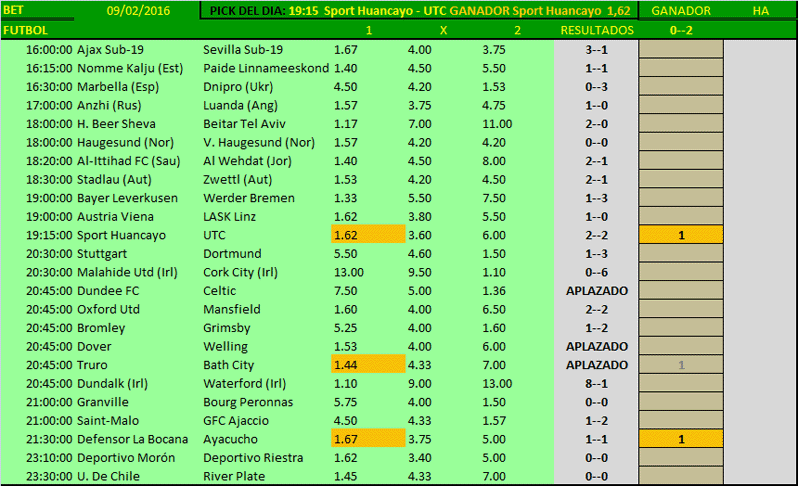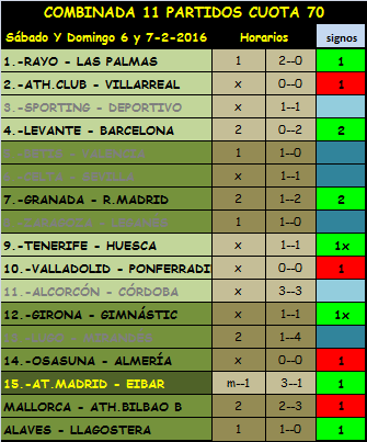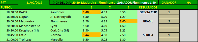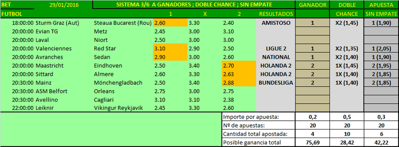 PICK´S Y ORDENACION CUOTAS FUTBOL VIERNES 22 ENERO 2016.