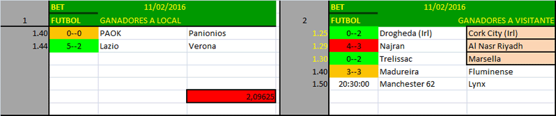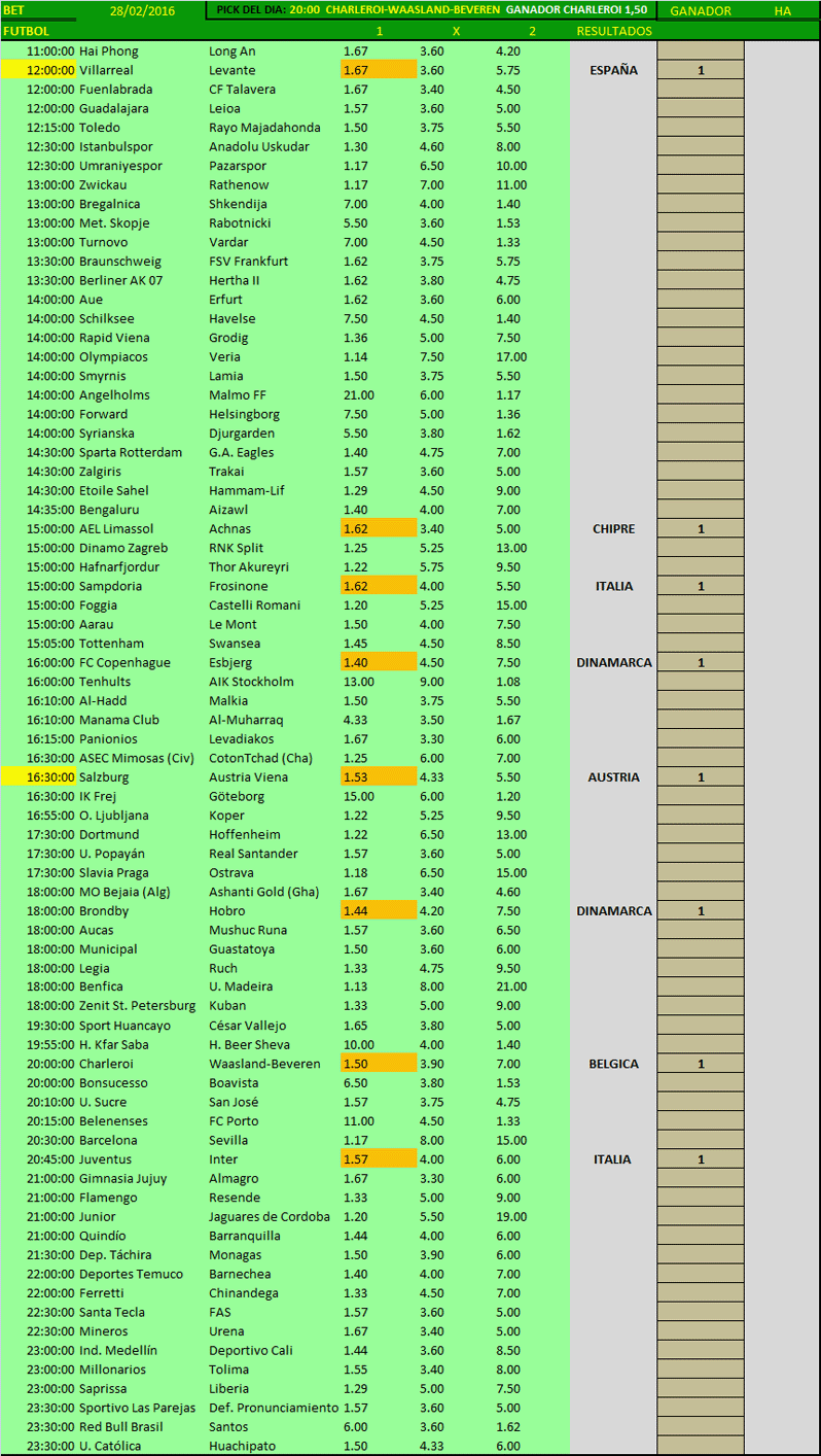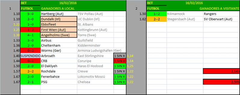 Pick´s futbol del dia 16 de Febrero del 2016.Pick´s futbol; Una de las aplicaciones muestra las siguientes propuestas; martes 16 Febrero 2016, Ganador del partido en primer filtro, celdas de color naranja, y sus especiales, baja la cuota pero posibilita más su acierto, stake 2/10.