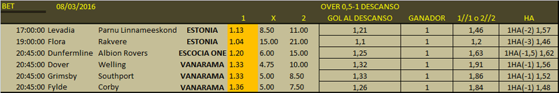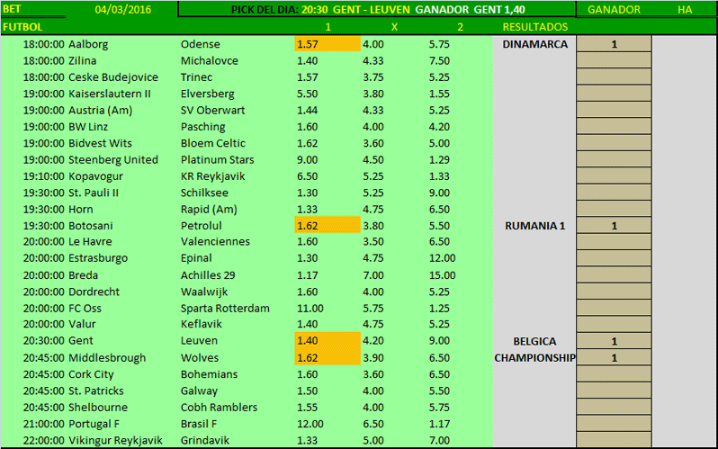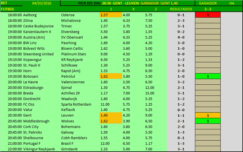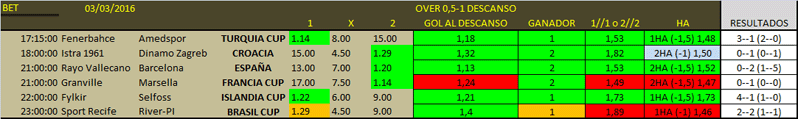 Pick´s futbol; Análisis de la aplicación, para hoy Jueves 3 Marzo 2016, stake 2/10, mercados gol al descanso, ganador, HT//FT y HA, estos son los que elige la aplicación, podeis hacer vuestra eleccion.