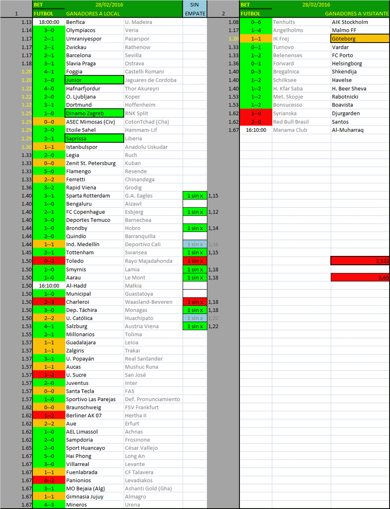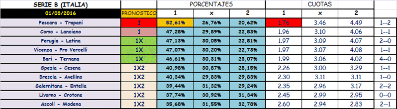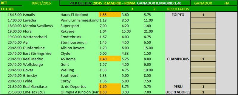 PICK´S Y ORDENACION CUOTAS FUTBOL JUEVES 3 MARZO 2016.