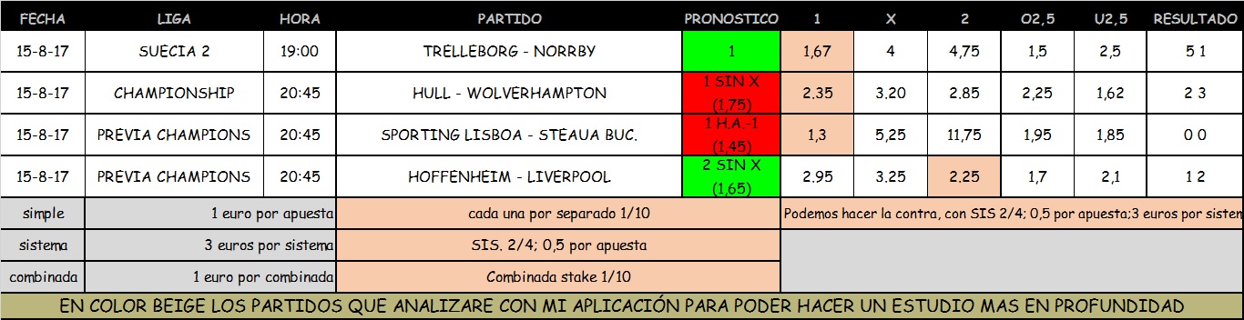 Busco la primera victoria de los del Norwich en esta Champioship, para los que os guste arriesgar, el H.A.-1 de los amarillos se planta nada menos que en 2.30, pero pienso que la necesidad va a hacer que sea un partido muy cerrado y muy tenso, y pienso que con la victoria de estos ya tenemos un buen prono.