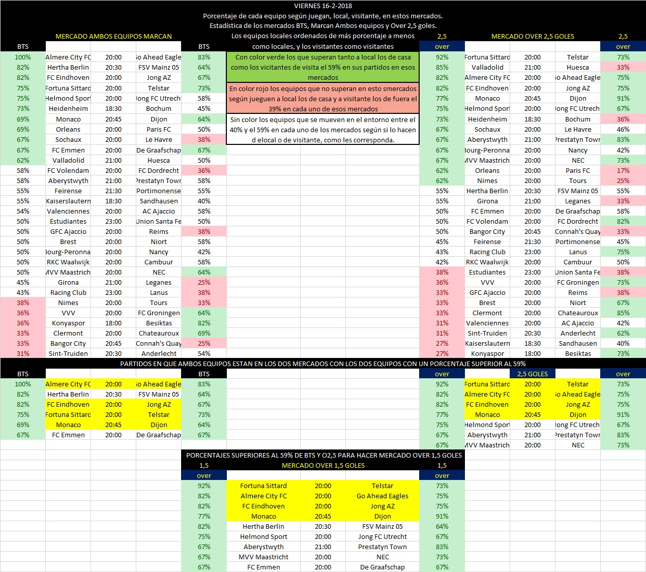 El excel como primer pronóstico, nos deja como primeros mercados el asiático en favor de los visitantes +1.5, pero yo voy a buscar la victoria del equipo local, en sus últimos está muy fuerte en casa, y el Depor la necesidad le puede, los mejores resultados que nos muestra la aplicación para ir con el pronóstico, con un 53.48% de fiabilidad, le otorga los resultados al marcador exacto, estos resultados como digo son 1-0, 2-0, 2-1, las opciones que nos muestra la aplicación en favor de la victoria de los locales, y dando el primer resultado con un 13.53%, nos muestra 3 de los ocho mejores resultados posibles ganadores a visitante.