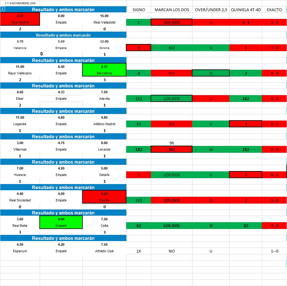 El signo del partido según el marcador exacto nos deja dentro de estas 8 primeras posibilidades las opciones de 4 victorias para los locales, dos opciones para el empate, y dos opciones para la victoria visitante, las casas de apuestas según su cotización y haciendo la ordenación de estás nos dejan tres victorias locales, un empate y dos victorias visitantes.