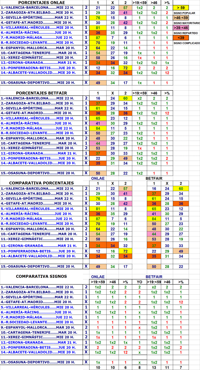 PORCENTAJES ONLAE Y BETFAIR,CON SUS COLUMNAS