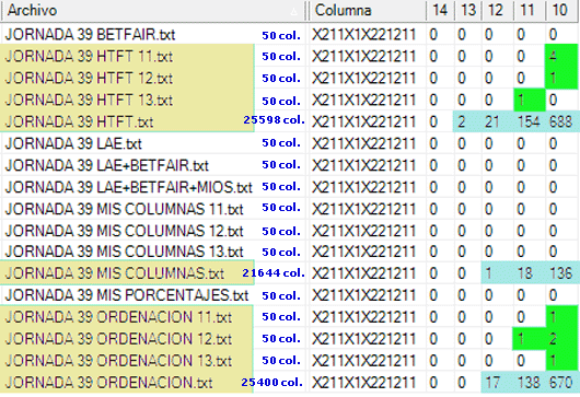 Al 13 con un porcentaje para posibles premios en esa categoria del 3% estas son sus 50 columnas:
