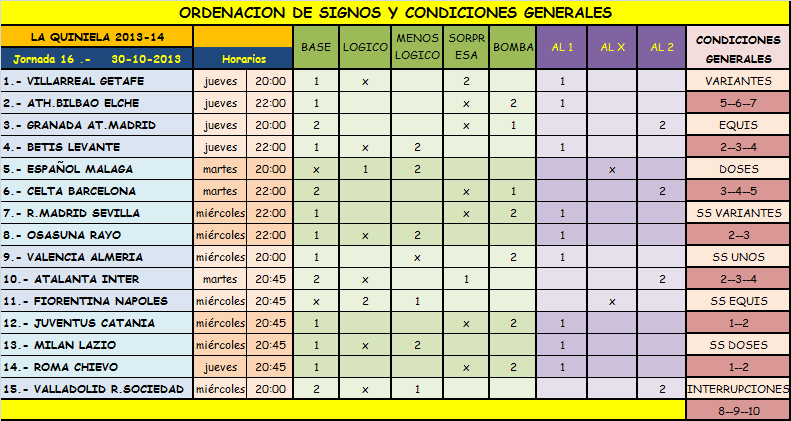 Información quiniela jornada 16 y quinigol jornada 18,martes,miércoles y jueves 29-30-31 de Octubre 2013.