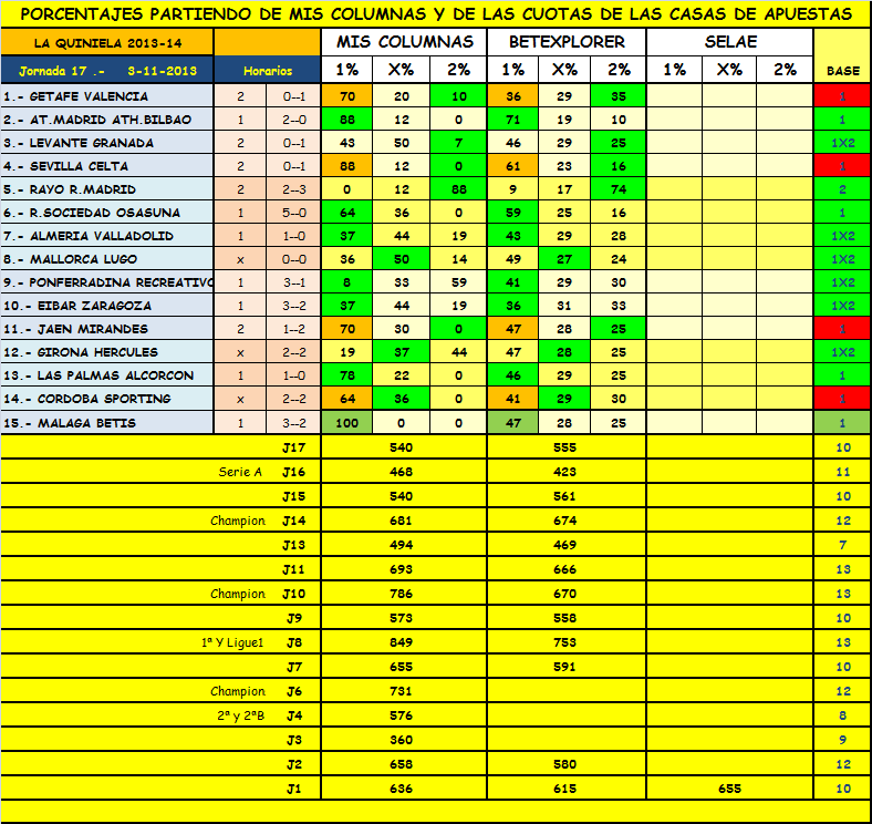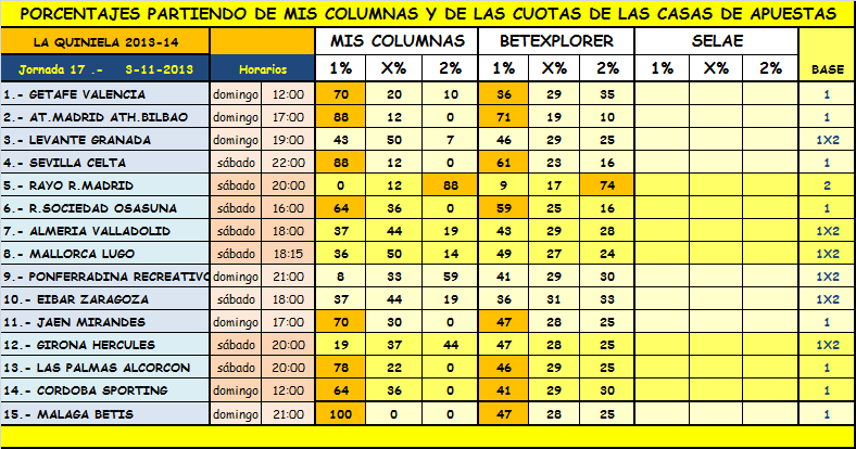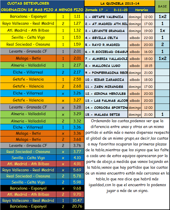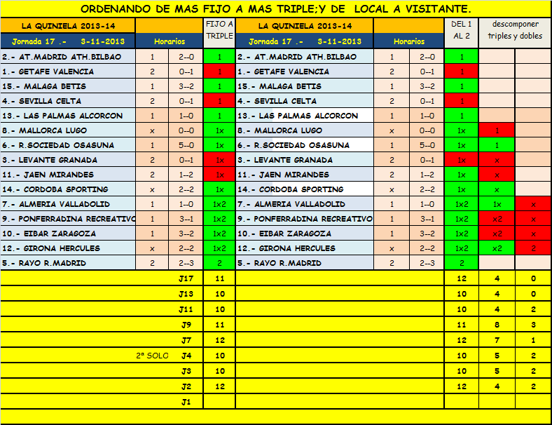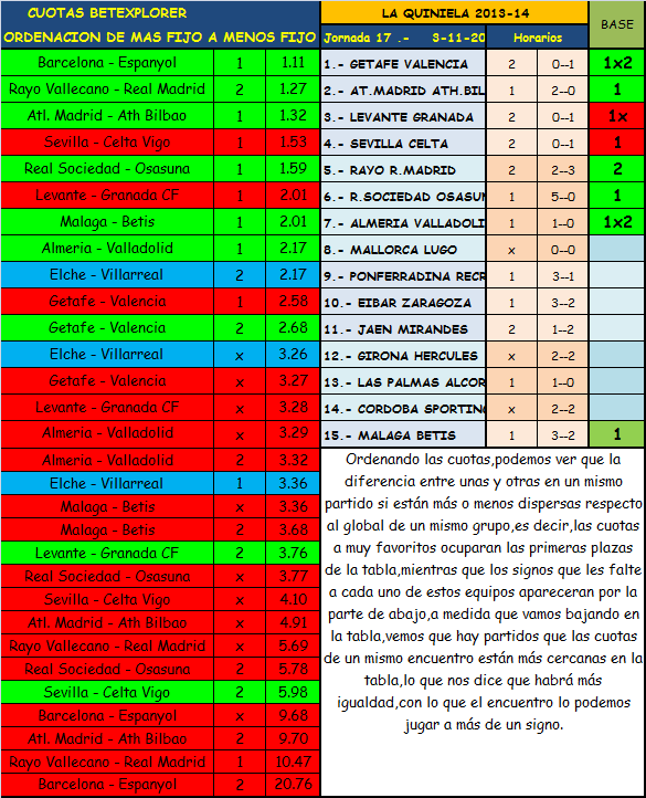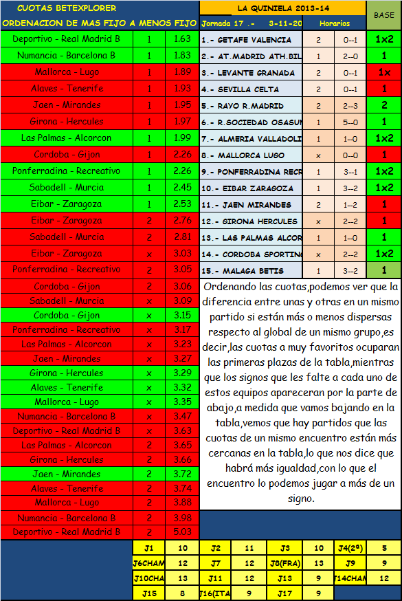 Información quiniela jornada 17 y quinigol jornada 19,sábado y domingo 2 y 3-11-2013.