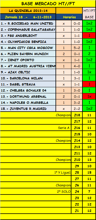 Información quiniela jornada 18 y quinigol jornada 20,martes y miércoles 5 y 6 Noviembre 2013.