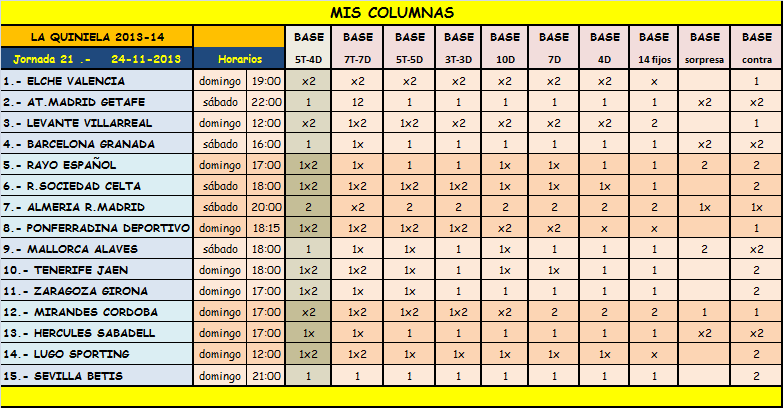 Información quiniela jornada 21 y quinigol jornada 23,sábado y domingo 23 y 24 Noviembre 2013.