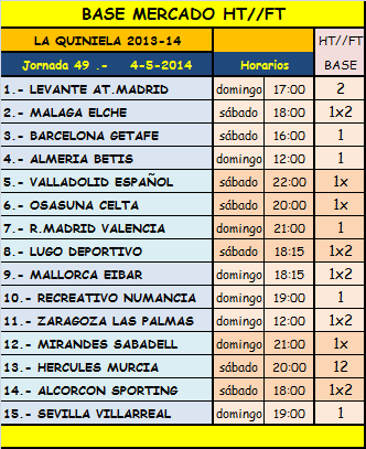 Información QUINIELA jornada 49 y QUINIGOL jornada 55,sábado y domingo 3 y 4 Mayo 2014.