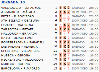 Jornada 10 de quinielas y 11 del quinigol,domingo 7-10-2012.