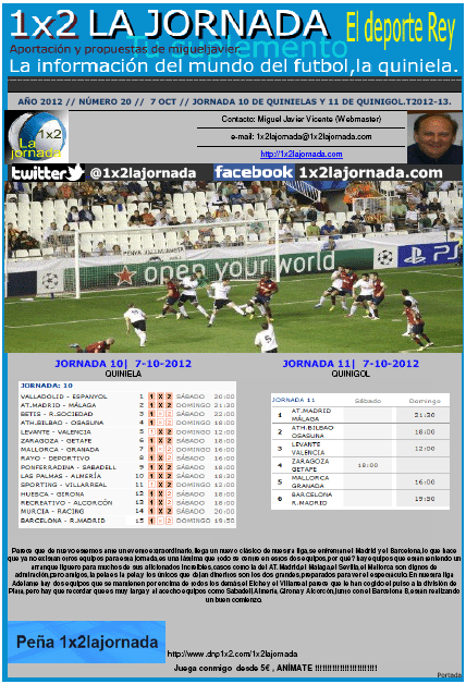 ; Jornada 10 de quinielas y 11 del quinigol,domingo 7-10-2012. Skip to main content