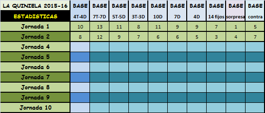 LA QUINIELA TEMPORADA 2015-16;jornada 2,Sábado y domingo 29 y 30 Agosto 2015.