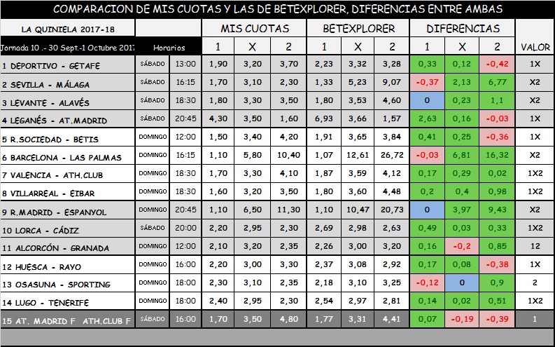 QUINIELA 10, SÁBADO Y DOMINGO 30 SEPTIEMBRE Y 1 OCTUBRE 2017.